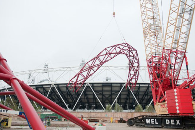 The side loop of the ArcelorMittal Orbit has been put in place, meaning that the tower is only a couple of weeks away from completion.