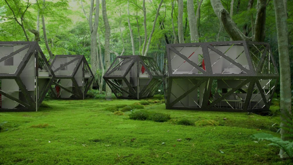 Quartz is a new generation of prefabricated, modular housing. Its structural integrity is derived from the fundamental building blocks of quartz crystals. Like a crystal, it can grow in repeat modules in any four directions. The basic polyhedral 3D unit shape can pack into itself and extend in linear directions, meaning it can form rows or be stacked one upon another as in a high rise. Quartz can also be packed into one container, making it easily deployed and rapidly erected in disaster zones for emergency shelter.